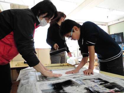 インクをつけて,刷りあげていました☆