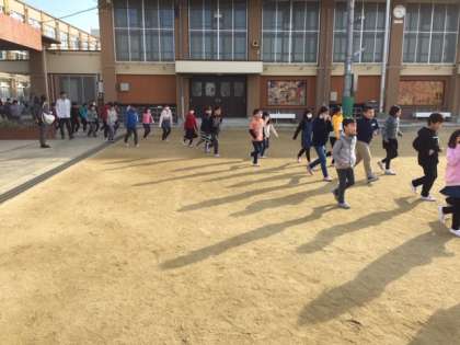 昨日,下鳥羽小学校では「地震が起こり,火災が発生した」ということを想定して避難訓練を行いました。