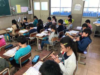 3年生は音楽の授業で「山のポルカ」をリコーダーで演奏していました。