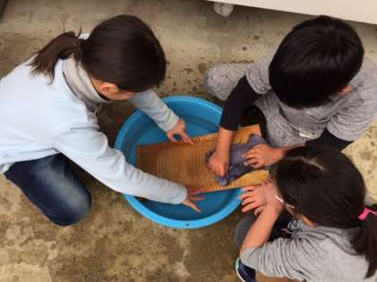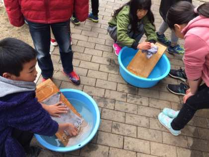 洗濯板を使って,手洗いの体験をしていました!!