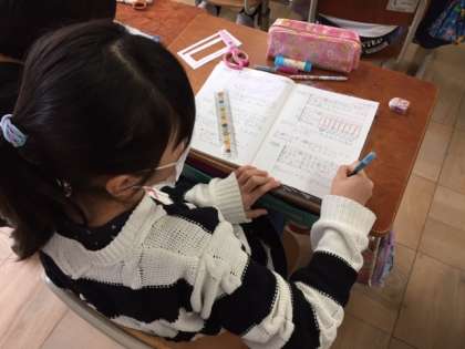 4年生は「ともなって変わる2つの量」について関係を「表」に表わしながら変わり方を調べていました☆