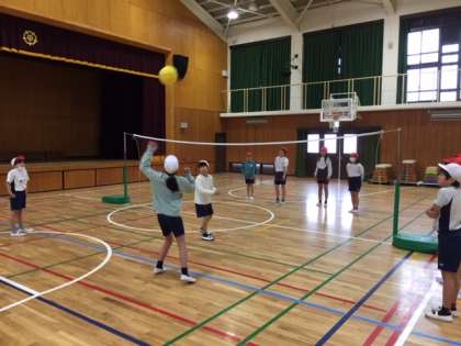 4年生は体育館で「ソフトバレー」をしていました。