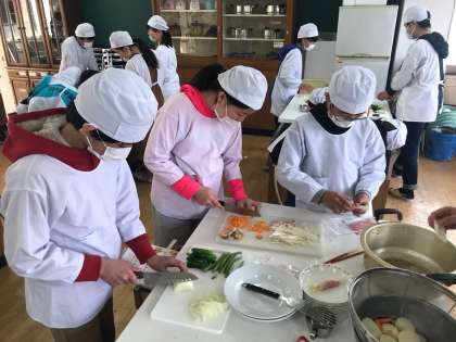 6年生は家庭科の時間に調理実習を行いました。