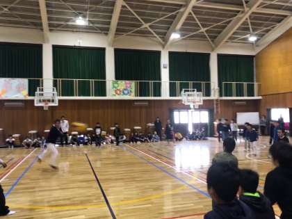 4年生は参観授業で,保護者対児童のドッジボール対決をしていました。