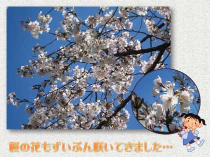 校内には,花々が美しく咲き揃ってきました。開花した桜の花も日ごとにその数を増しています。入学式の頃には,ちょうど満開の一歩手前くらいになるのでしょうか…。