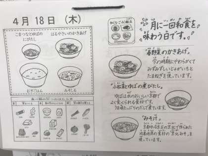 本日は和献立と言って「和食」の献立となっています。