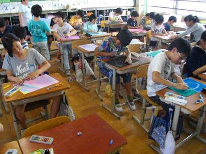画用紙の画面にコンテで塗りつぶし,その後は消しゴムで消して形を作っていきました。