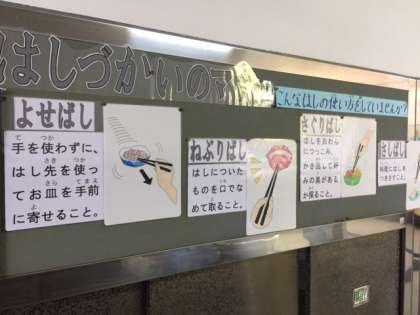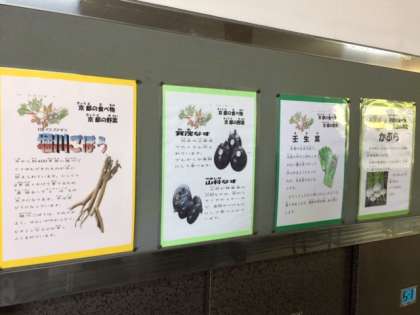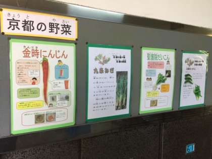 給食室を覗くと,「京野菜」や「はしづかいのマナー」の掲示があり,勉強になりました!!☆