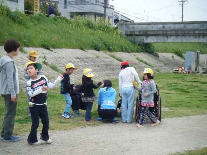 今日の3・4時間目,ひまわり学級のみんなで,鴨川の