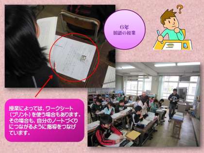 もちろん授業によっては,ワークシート(学習プリント)を活用することもあるのですが,その場合も,教師は,子ども自身のノートづくりにつながるような指導を心がけるようにしています。