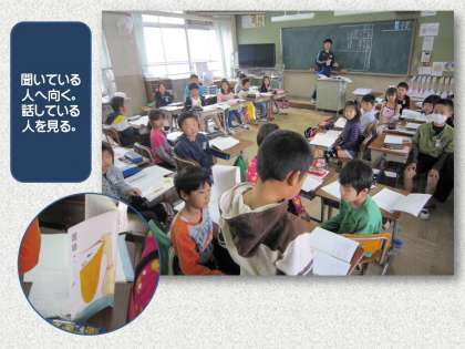 学級のみんなで話し合う時には,それぞれがどのようなことに気をつけたらいいのでしょうか。話し手の子どもは? 聞き手の子どもは? どんな姿勢で,どんなことに注意していればよいのでしょうか。