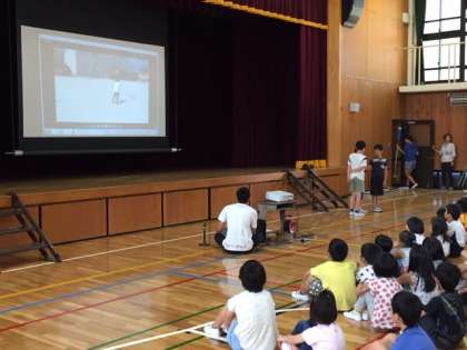 6月の児童集会では,「児童会本部」「飼育委員会」「運動委員会」が発表してくれました。児童会本部は夏休みまでの生活目標を「1,黄帽をかぶって登下校」「2,人の目を見て挨拶」「3,ベル着」と決め,意識しましょうと呼びかけてくれました!!