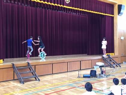 運動委員会からは,一輪車や竹馬・バスケットゴールの使い方など,動画や実技をまじえてお知らせしてくれました。