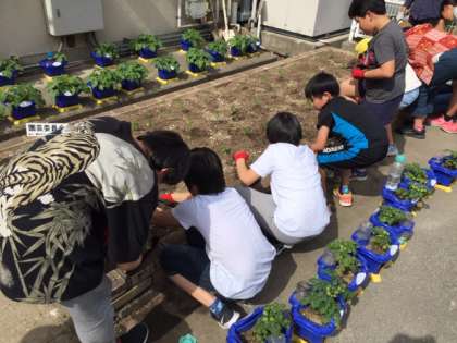 本日の園芸委員会は花壇に日日草やマリーゴールドの苗を移植しました☆
