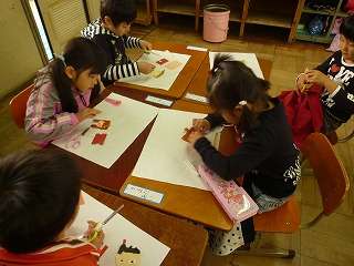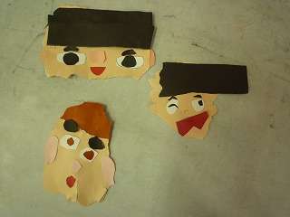 口や耳,まゆなどをつけ,顔ができあがりました。