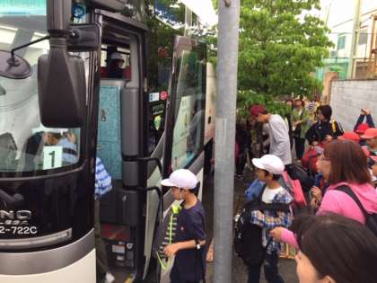 4年生,63名は出発式を終え,元気にバスで「みさきの家」に向かいました!!