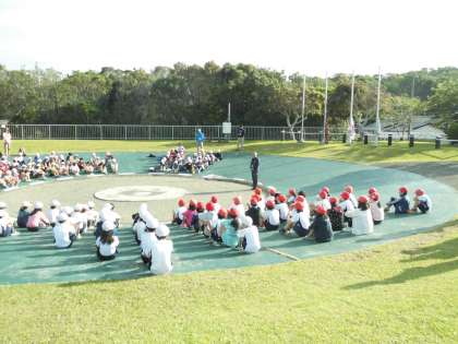 3小学校のみんなで校歌や学校紹介の交流をしました。