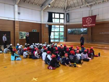 校旗をおろし,校歌を歌って「みさきの家」を後にします。