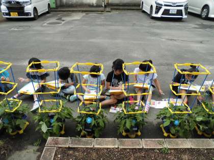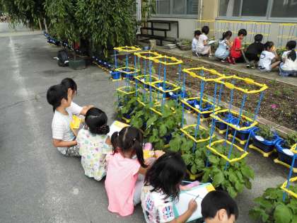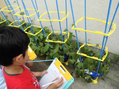 葉っぱも大きくなり,子どもたちは「手の大きさぐらいあるわ」と大喜びです。