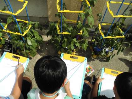 1年生のにこにこ笑顔のように,あかるくかわいい花がたくさん咲いてほしいですね。