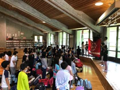 入所式では,校旗を掲揚しながら校歌を歌い,3泊4日の活動への意気込みを新たにしました☆