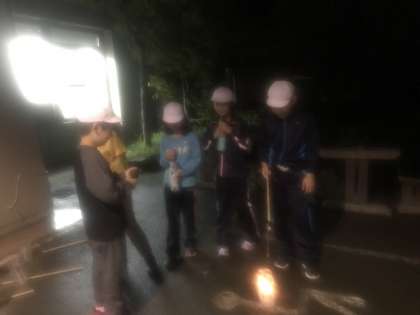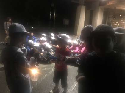 各班,ランタンの灯りをたよりに夜の森にくりだしました!!