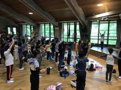 朝の集いを行い,「健康観察やスケジュールの確認・ラジオ体操」などをし,1日のスタートをきったようです☆