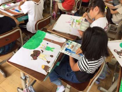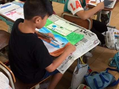 濃淡を出すため,水の量を考えながら絵の具を彩色していました。