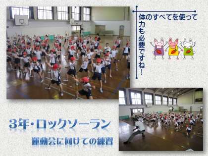 3年生は,運動会でソーラン節(ロックソーラン)を演じます。今日も体育館での練習でした。本番で素晴らしい演技ができるように,さまざまな方法で練習を積み重ねています。