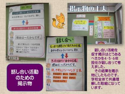 本校では,授業研究と関連して,掲示物に工夫を加えようとしています。そのための,学年ごとの話し合い,低・中・高学年の部会ごとの話し合いを大切にしていきたいと思っているのです。これからも,子どもたちの学力の向上につながる掲示物のあり方を考えていきたいと思っています。