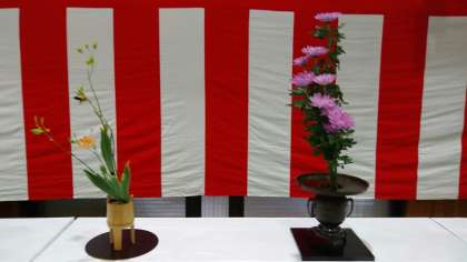 会場は紅白幕やきれいな生け花などで華やかであたたかい雰囲気です。
