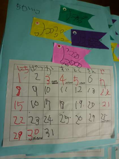日にちや曜日の感覚をつかむため,カレンダー作りをしています。