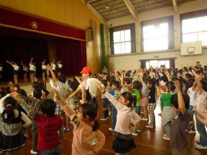 全校ダンス担当の子の動きを見ながら,踊っていました。