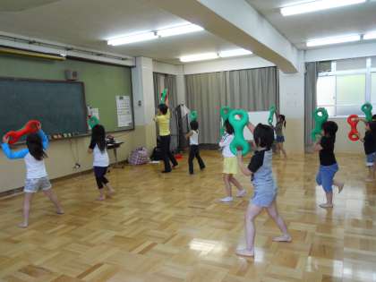 今度は軽快な音楽が聞こえてきました。同じ階で3B体操が練習をしているのです。ベルを持って音楽に合わせてリズム体操に取り組んでいました。放課後,頑張っている子どもたちの顔はみんなとても素敵でした。