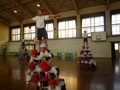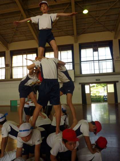 大人数の技は,みんなの心が一つにならないとうまくいきません。