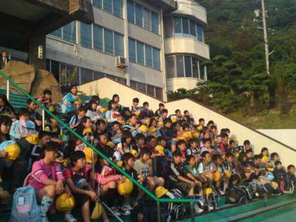 今日の宿舎である「国民宿舎・王子が岳」に,到着しました。子どもたちは,それほど疲れた様子もありません。夕食を楽しみにしているようです。