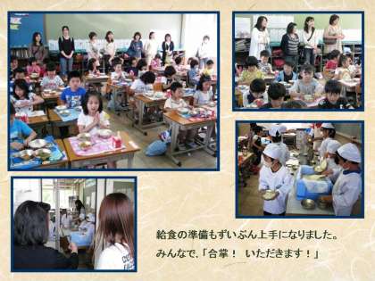 説明会の後,1年生の教室に行き,1年生が実際に給食の準備をしている様子や食べている様子を見学しました。1年生は,入学当時よりずいぶん上手に,そして早く準備をすることができており,保護者の方もちょっと安心された様子でした。