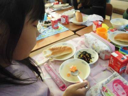 今日の給食は,子どもたちが大好きなクリームシチューでした。