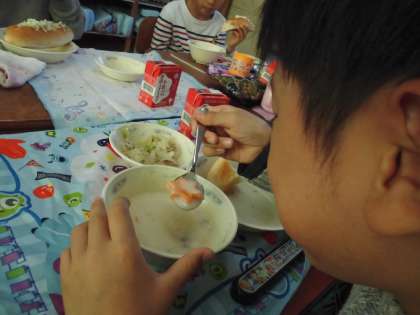 今日も大おかずにラッキーにんじんが入っていて,子どもたちは大喜びでした。