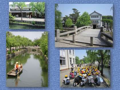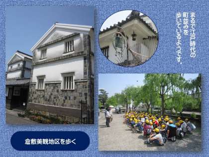倉敷に入ってすぐに,ある女の子が「まるで江戸時代みたいやなあ。時代劇に出てくる町みたい。」とつぶやきました。そのとおり歴史を感じる町です。子どもたちは,大きな楽しみだった「おみやげを買うこと」に夢中になりました。