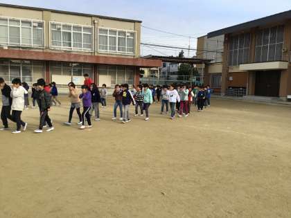 下鳥羽小学校では,隣接する「下鳥羽こども園」と連携し,避難訓練を行いました。