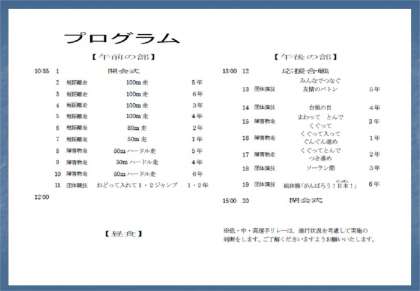 なお,プログラムは運動会会場(PTA賛助会受付)にて配布していますので,よろしくお願いいたします。