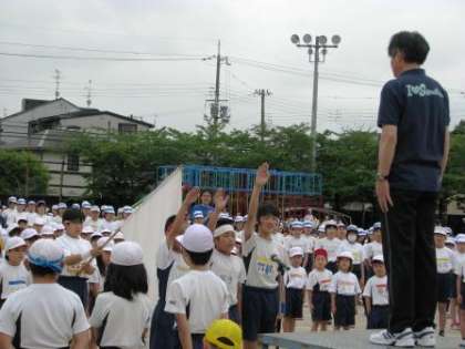 子どもたちの元気いっぱいの選手宣誓が,きっと雨雲をはねとばしてくれるでしょう。