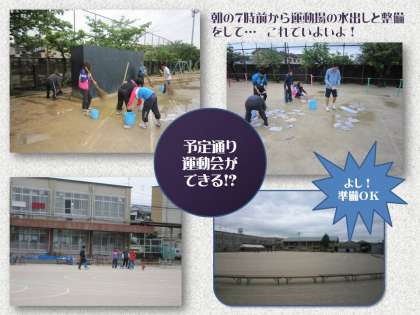 本日の運動会の実施に向けて、保護者の皆様や地域の皆様には,本当に多大なご支援とご協力を頂きました。有難うございました。