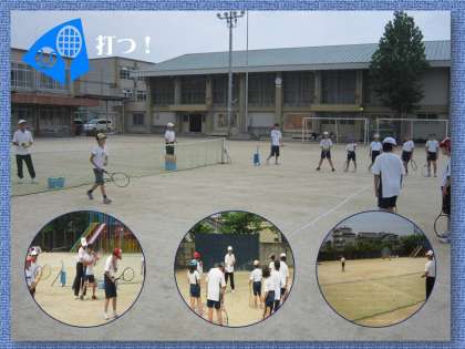 新年度になって,土曜部活・硬式テニスでは,新たに参加する子どもたちが増えました。地域の指導ボランティアの皆さんが,熱心に教えてくださっています。子どもたちは基礎からしっかり指導してもらい,テニスが好きになってきているように思えます。