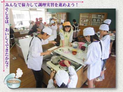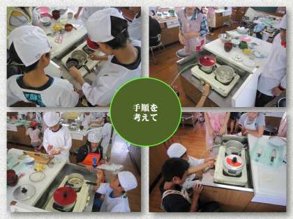 6年の調理実習は,まず食事の基本である「ごはんとみそしる」をつくります。だしを取るのにも,分量を計りながら,とても慎重に実習をすすめているのに感心しました。おいしいみそしるができたかな?家でもつくらせてもらうといいですね。