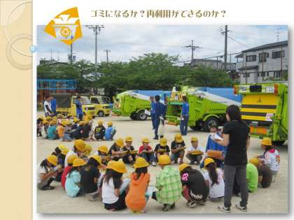 何種類かのゴミ収集車を見せて頂きながらのお話を通して,「分けて集められたごみや資源は,どのようにして処理されたり,再利用されたりするのか」という学習問題について調べる学習を進めました。この調べ学習から,次にどこを見学すればよいか,どのようなことを調べればよいかが,少しずつ明らかになってきます。