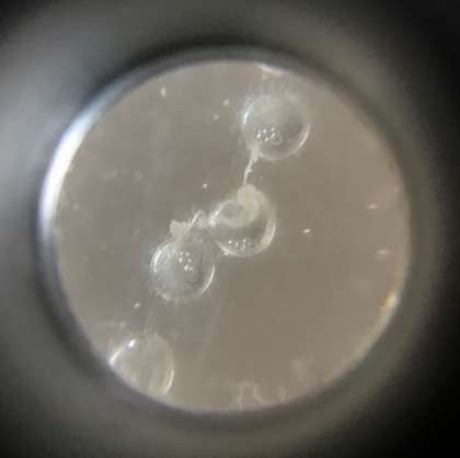 たまごの中にあわのようなものがいくつか見えますね。