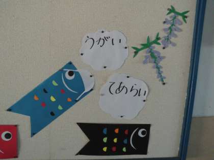 1年生の掲示板では,子どもたちの作品などを紹介していきます。