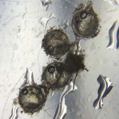 5年生のみなさん!休みの間にメダカのたまごはすくすくと育っていますよ。